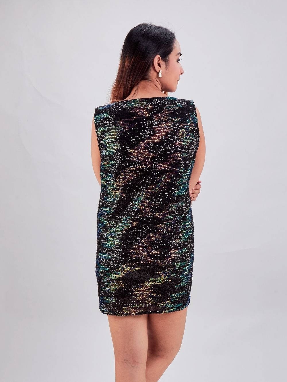 Sequins Work Stretchable Multicolor Dress For Party Wear