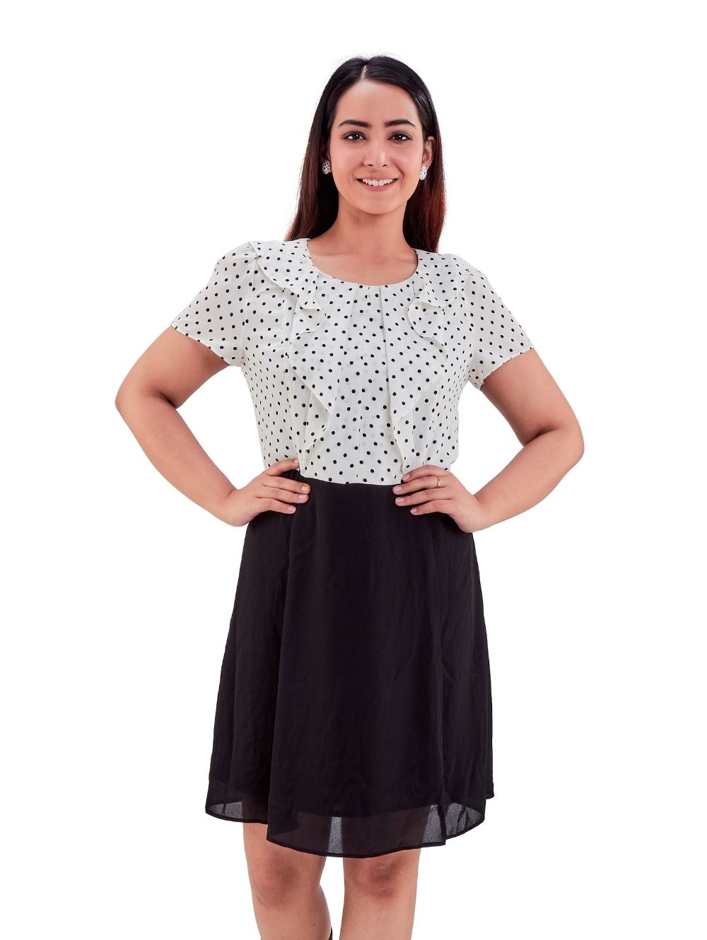 Polka Printed Self Design Double Layered Cotton Kurtis