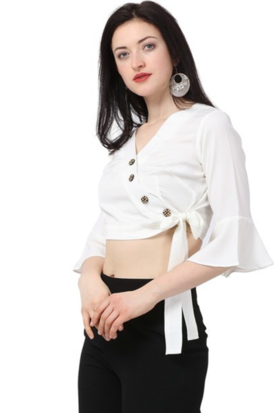 Fabric- Cotton Blend, Length - Thigh-Short, Sleeve- 3/4th, Neck- V Neck, Style- Party Wear, Work- Plain. Pack of - 1 Top, Wash Care- Dry Clean Only.